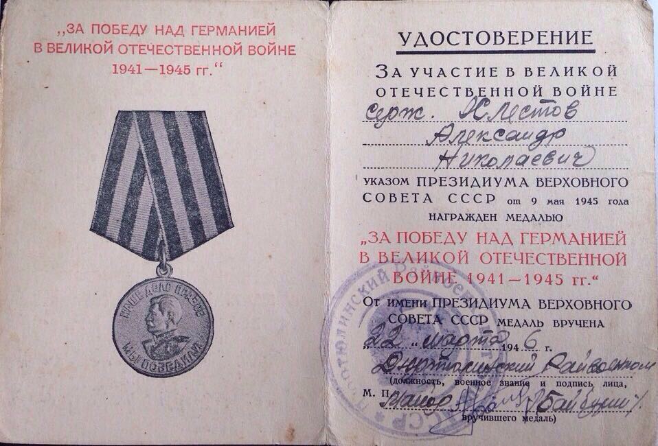 Сегодня мы предоставляем вашему вниманию историю от представителя ГБУ «Личность» Дмитрия Хлестова. Он поделился с нами большим количеством фотографий и немного рассказал о своем деде-участнике Великой Отечественной войны.
