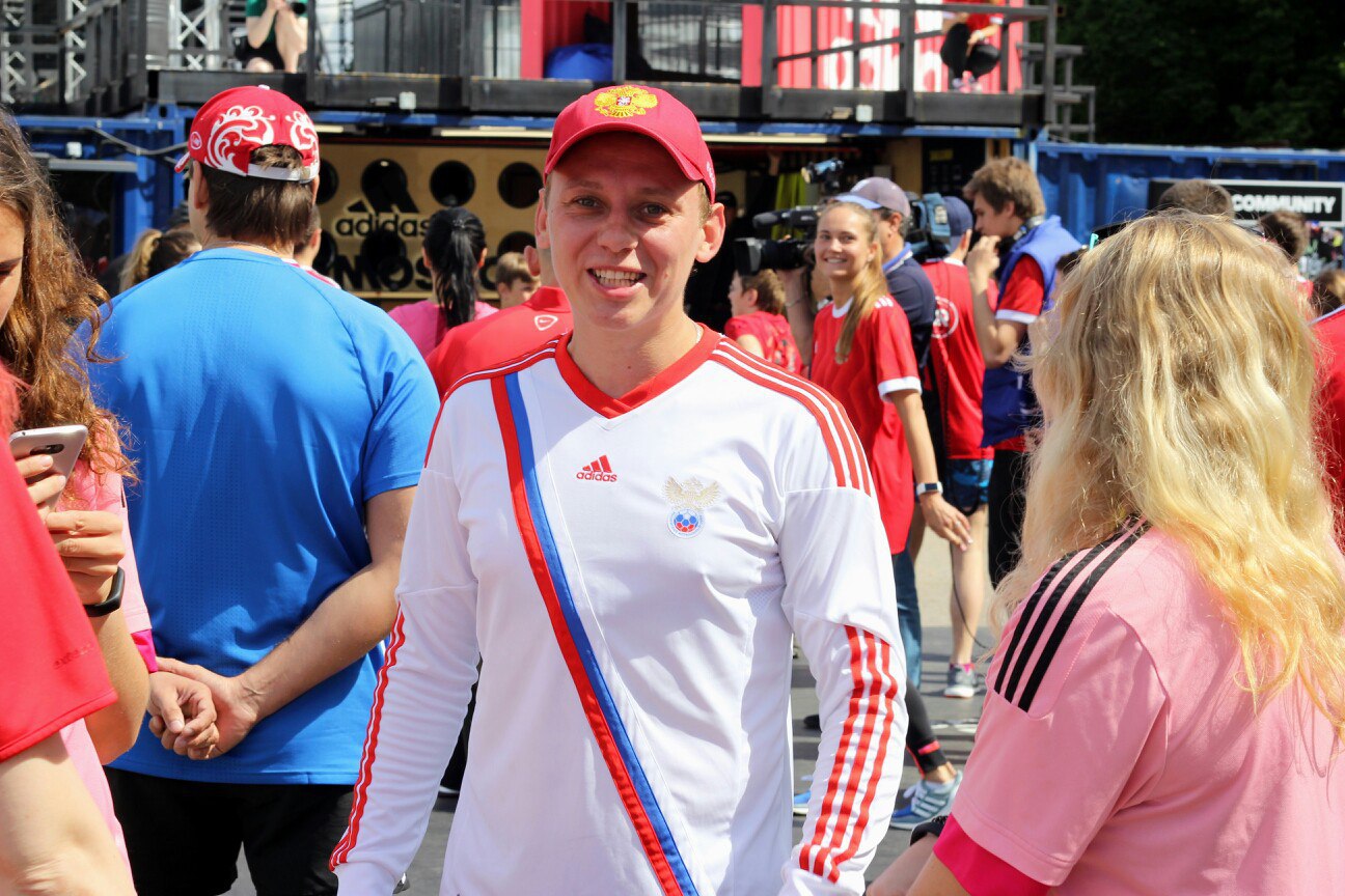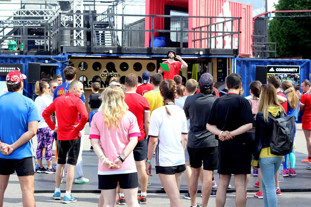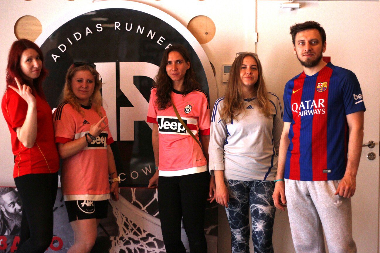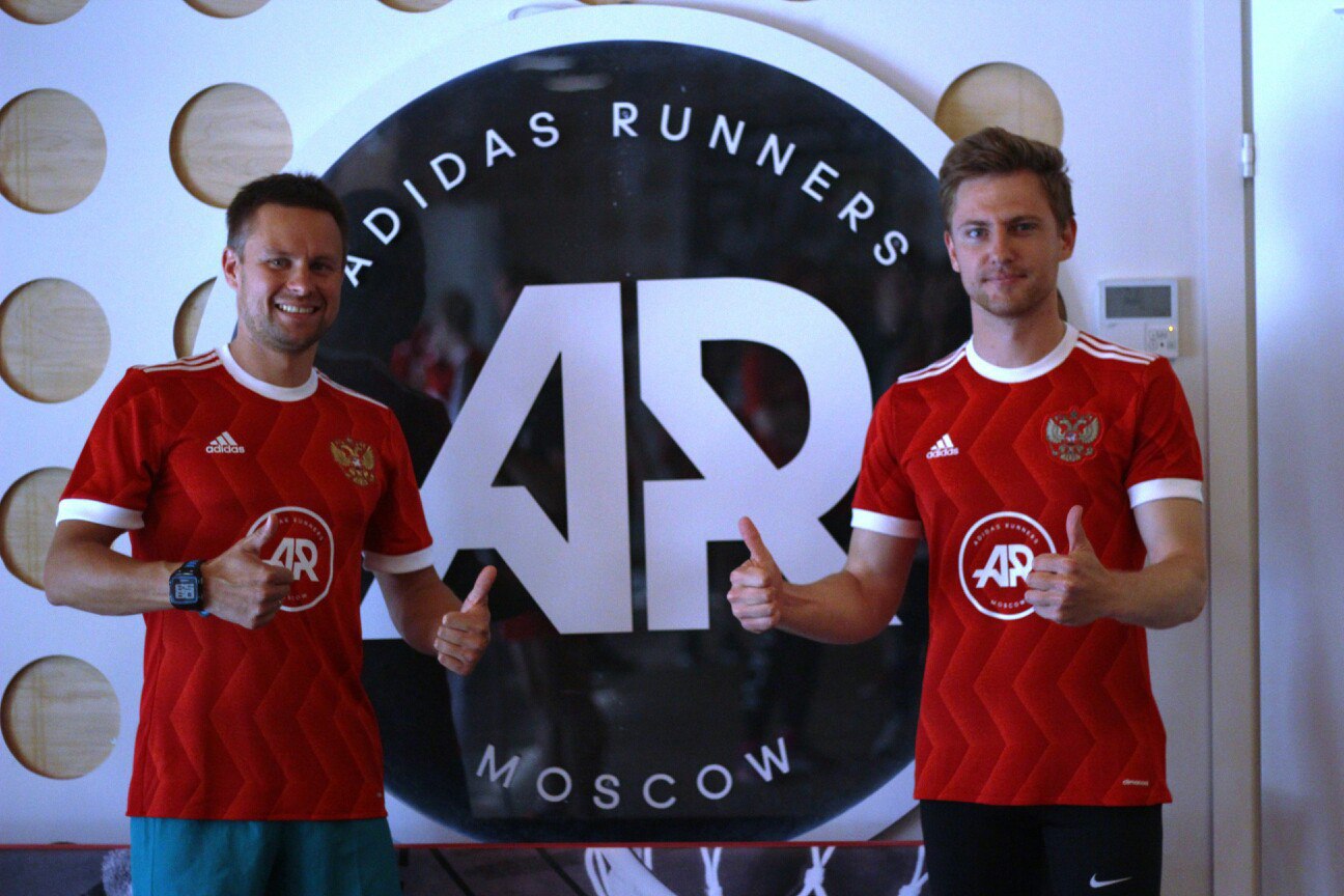 Не считая тренировок – они проходят у нас дважды в неделю, по вторникам и четвергам, — начинался он с поисков «джерси» — футболок любимой футбольной команды или сборной. Это целая история: они дорогие, не у каждого есть. Нашим ребятам пришлось писать десятки сообщений всем друзьям и знакомым, ездить в разные уголки Москвы, по магазинам, даже в сток центры. А перед самым забегом совершенно обычный с виду парень подарил джерси нашему бегуну Саше Козлову. Когда этого парня вызвали на сцену, оказалось, что это основатель Adidas Runners – Петр Гыскэ.
