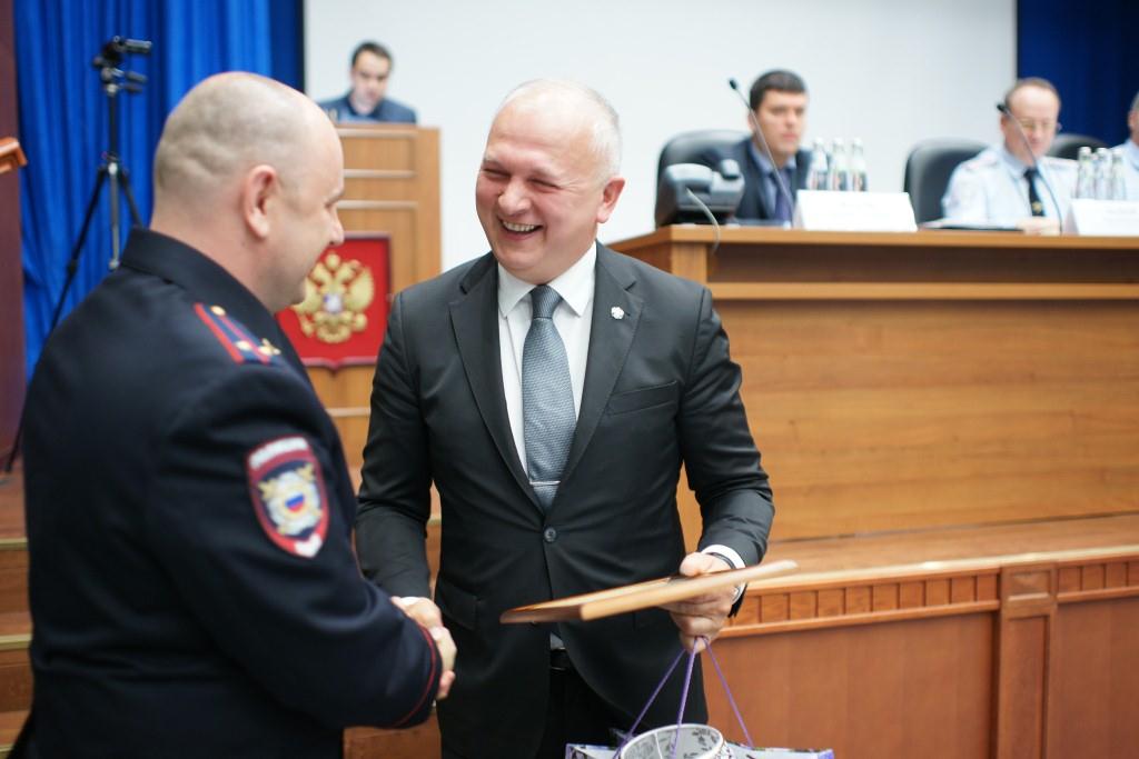 В начале совещания начальник полиции УВД Дмитрий Баранов и председатель Общественного совета при УВД по ЮАО наградили благодарностям и медалями «За доблесть в службе» сотрудников полиции УВД по ЮАО ГУ МВД России по г. Москве за добросовестное исполнение служебных обязанностей и высокие результаты в оперативно-служебной деятельности. В своем вступительном слове Дмитрий Баранов отметил положительную динамику полиции Южного округа г. Москвы по основным направлениям деятельности и обозначил приоритетные задачи на 2 полугодие 2017 года, в том числе касающиеся обеспечения безопасности граждан в общественных местах и профилактики правонарушений.