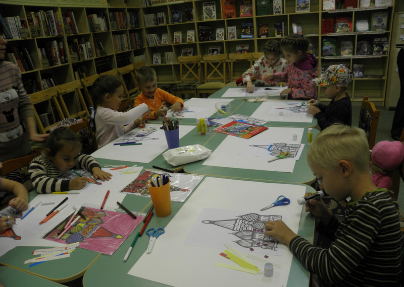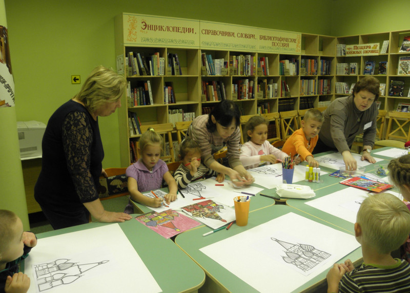 На занятии юные читатели также сделали своими руками миниатюру Храма Василия Блаженного в технике почворк. Помимо прочего, дети ознакомились с книжно-иллюстративной выставкой о Москве «Я шагаю по Москве».