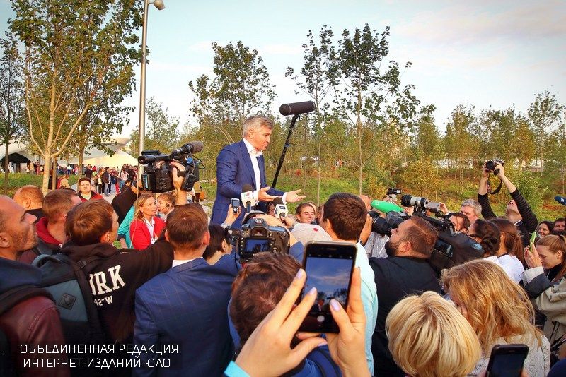Экскурсию для журналистов по парку провел лично министр культуры Москвы Александр Кибовский. Открывая пресс-тур, он немного рассказал об истории парка Зарядье – истории того, как принималось решение о создании комплекса, несмотря на то, что такую территорию можно было очень выгодно передать инвесторам, как проводился международный конкурс на планировочное решение, как шло строительство.