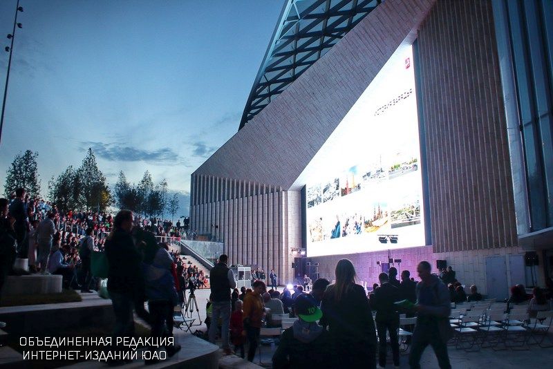 В эти дни в зале показывают фильм о достопримечательностях Москвы, снятых с высоты птичьего полета. В фойе зала расположен большой экран, на котором в режиме нон-стоп демонстрируется ролик о создании уникального фильма. По словам Александра Кибовского, для монтажа видеоряда длительностью всего в несколько минут его создатели отсняли более полусотни часов исходного материала. При помощи современных средств аэросъемки они запечатлели десятки знаковых и уникальных мест Москвы: усадьбы и парки, рекордные инженерные сооружения и спортивные объекты, монументы и исторические достопримечательности.