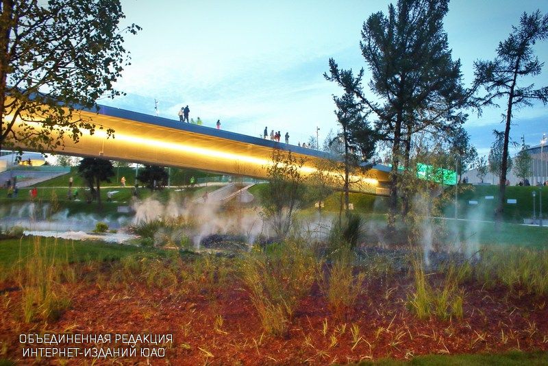 Интересно, что экскурсия по парку «Зарядье» для СМИ проходила в сумерках, что позволило оценить систему освещения, разработанную специально для парка. Она позволит посетителям чувствовать себя одинаково комфортно в светлое и темное время суток. По словам Натальи Петровой, представителя компании–проектировщика систем управления освещением парка, «вся система будет рассчитана на изменение уровня света – от вечернего, «вполсилы», до ночного – на полную мощность. В системе освещения активно применяются светодиоды, в том числе, обеспечивающие декоративную подсветку самых разных цветов».