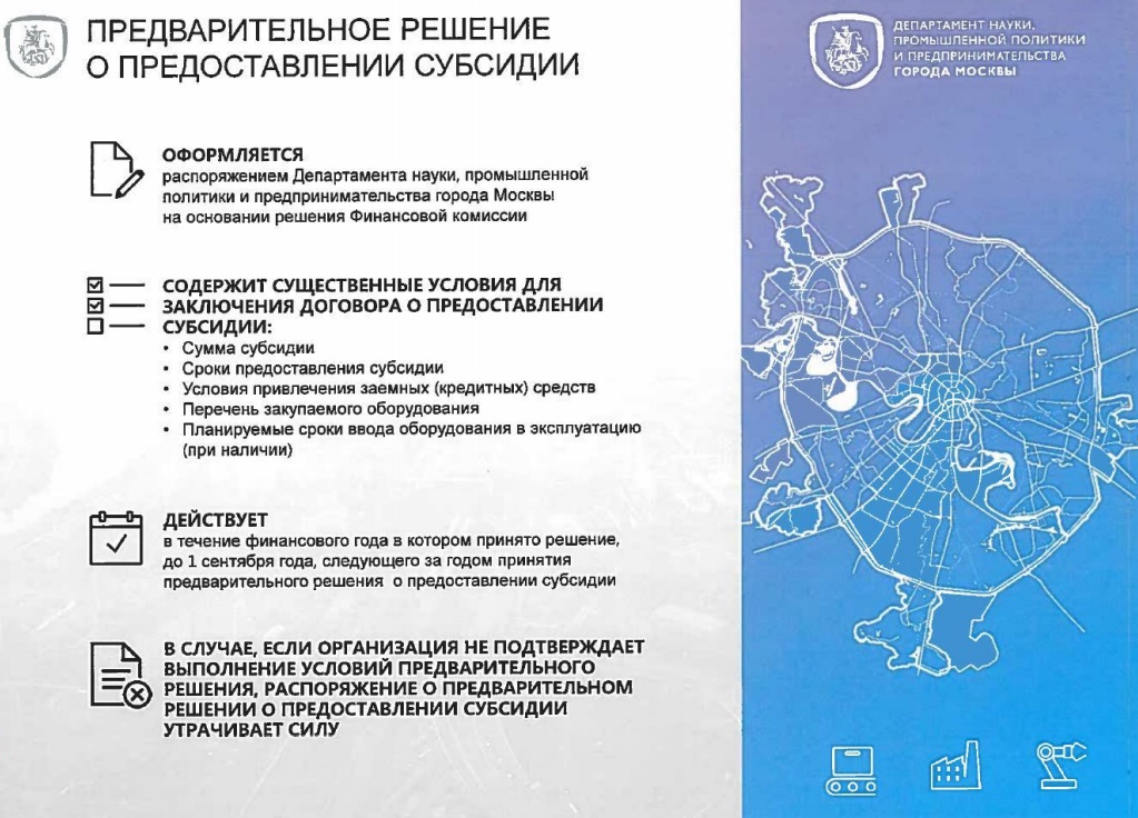 Департамент науки, промышленной политики и предпринимательства города Москвы информирует о начале отбора заявок организаций, осуществляющих на территории города Москвы деятельность в сфере промышленности на предоставление субсидии из бюджета города Москвы на возмещение части затрат на приобретение отдельных видов оборудования; части затрат на уплату лизинговых платежей по договорам финансовой аренды (лизинга) отдельных видов оборудования.