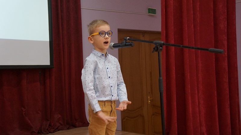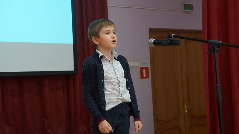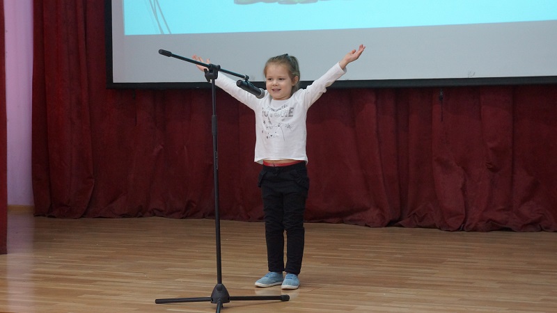 Пятилетний воспитанник дошкольного отделения «Теремок» Ренат Караев прочел стихотворение, которое ему помогла написать мама; в нем описана вся дружная семья Рената и рассказывается об озорных братьях мальчика — один из них совсем недавно родился, а второму уже два года.