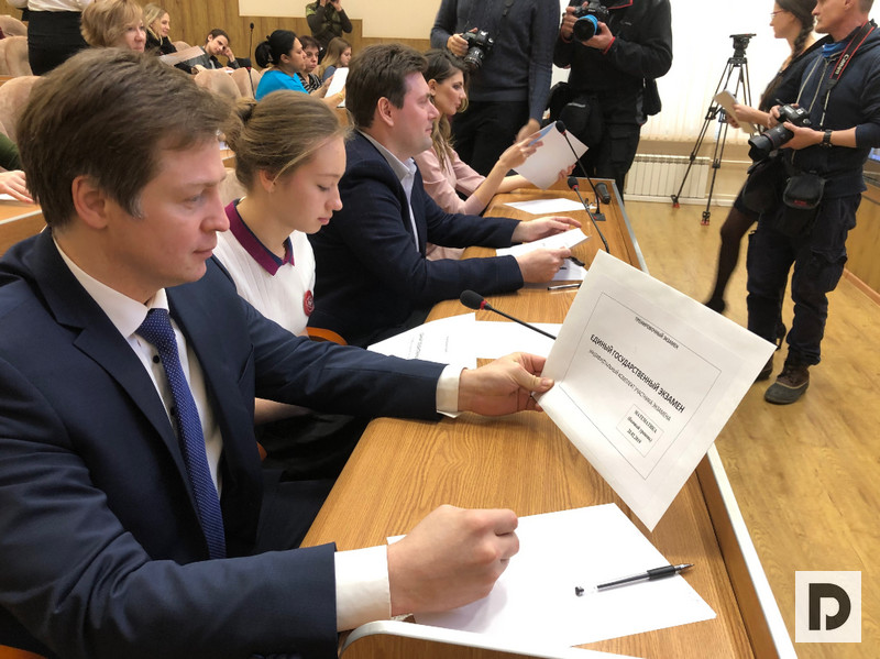 В комнате для хранения вещей участников попросили оставить телефоны, электронные устройства и сумки. С собой можно было взять только паспорт и ручку с черной пастой. Экзаменующихся ознакомили с правилами прохождения испытания. После вскрытия запечатанных сейф-конвертов всем участникам раздали экзаменационные материалы и объяснили, как правильно нужно заполнять бланк регистрации. Покончив с организационными вопросами, аудитория приступила к выполнению заданий. Всего на экзамен отводилось 30 минут вместо стандартных трех часов. Однако это не смутило школьников, их родителей и журналистов – многие справились раньше отведенного времени.