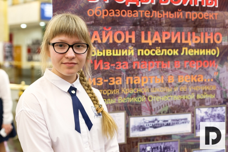 Ученица школы № 904 Полина Дудкина рассказала, что она вместе с ребятами из других царицынских школ заинтересовалась историей Красной школы — единственной тогда в поселке Ленино-Дачное; именно так раньше называлось Царицыно. Многие ее выпускники сразу из-за парты отправились на фронт — и обстоятельства их жизни и пытаются сейчас восстановить юные исследователи.