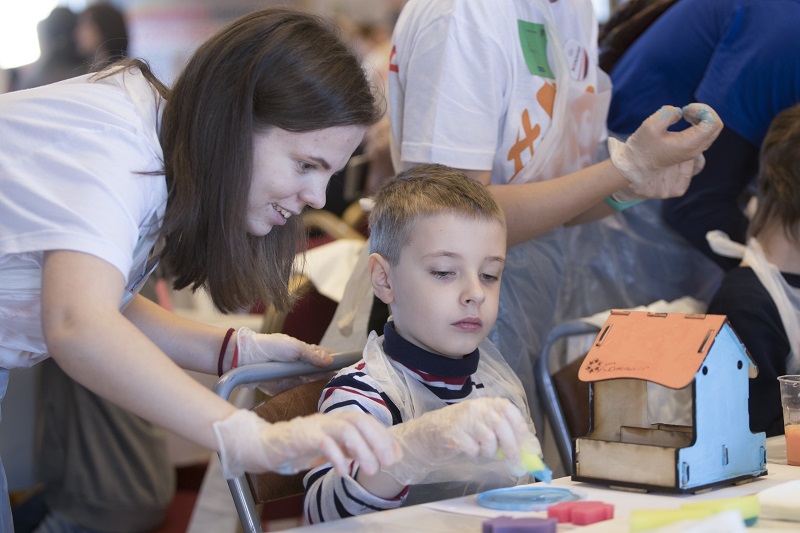 В программу, помимо тематических мастер-классов и лекций от психологов и врачей-дефектологов, вошли благотворительная выставка, на которой были представлены инклюзивные творческие мастерские, и детские занятия. Состоялась и экспозиция работ «особых» художников.