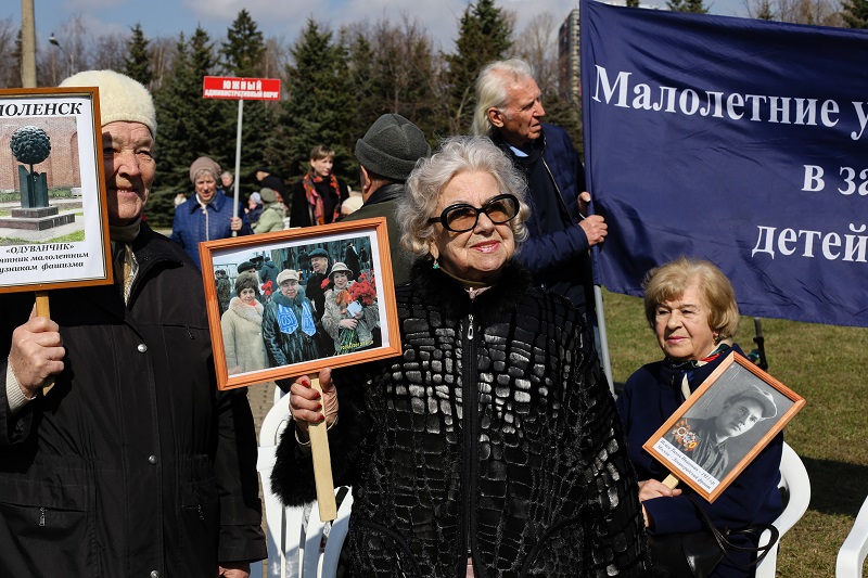 Из Южного округа к акции памяти присоединились 45 человек, побывавших в детстве в фашистских лагерях. Это члены региональной организации малолетних узников «Непокоренные»; всего в ней состоят около семи сотен жителей округа. В страшные годы войны многие из них были совсем маленькими; сейчас они уже вырастили детей и воспитали внуков.