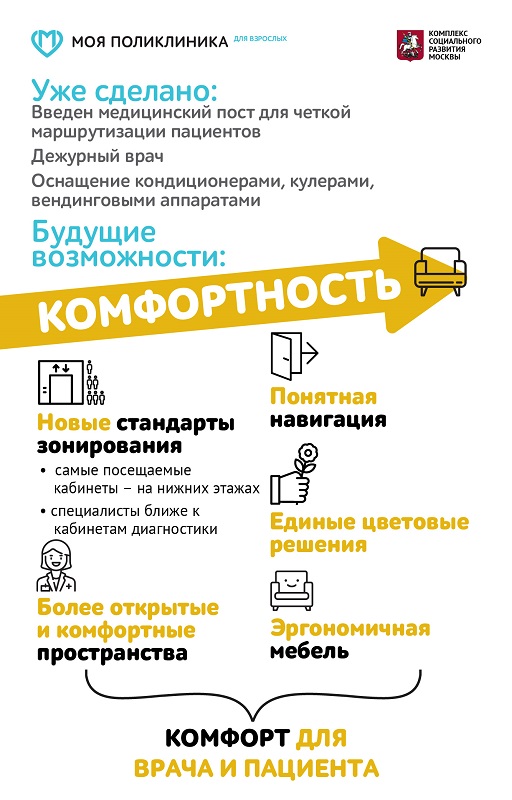 Ремонт подразумевает, помимо полного обновления всех инженерных систем, создание комфортных пространств, удобных кабинетов для пациентов и врачей.