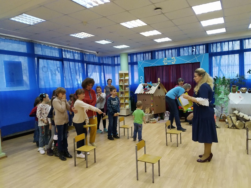Вместе с главным героем вечера малышня приняла участие и в подвижных играх; здесь роль забавного непоседы взяла на себя режиссер Культурного центра «Москворечье» Елена Градова.