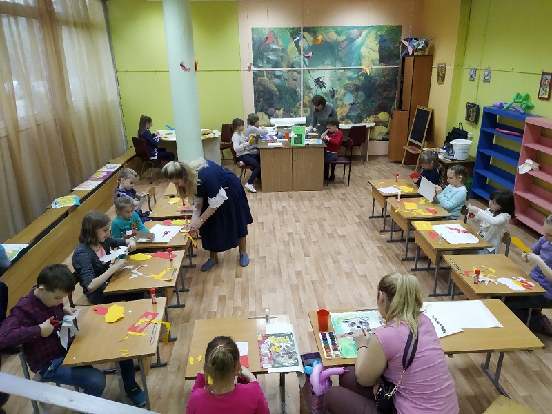 После юные художники направились в художественную мастерскую, где домовенка нарисовали, а маленькие творцы — в творческую, где Кузю сделали в технике аппликации. Победителей двух конкурсов наградили домовенком Кузей и сладкими подарками.