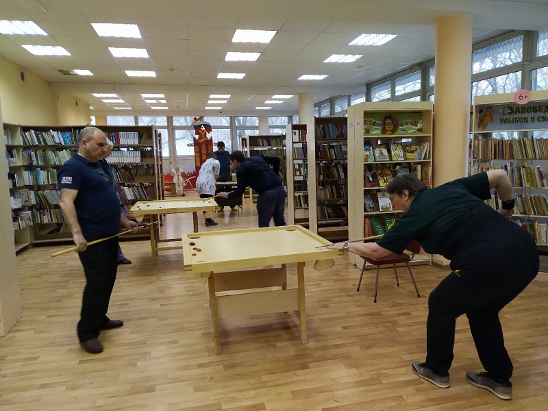 Так, в вестибюле читальни и в зале абонемента была оборудована «Территория настольных игр»; в ассортименте оказались французская игра «Кульбуто», английская — «Шаффлборд», немецкая — «Джакколо» и латвийская — «Новус». Это новые, интересные и уже набравшие популярность игры. Их предоставили партнеры библиотеки № 154 — Общественная организация инвалидов «Новые возможности».