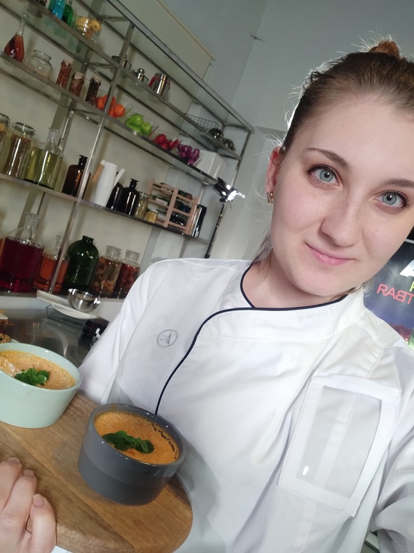 — Потом все немного утихло. На втором курсе мы узнали, что в конце года у нас пройдут учебная и производственная практики. На учебной я наконец-то научилась чистить картошку! (смеется) Я понятия не имела, как мы вообще будем что-то готовить: на первой практике все проходят основы — учатся чистить продукты, нарезать их — меня это жутко раздражало! (смеется) Но потом, когда мы начали готовить сложные блюда, я начала «входить в раж»; сначала все получалось обычно и не очень вкусно – не скажу, что это были первосортные супер-блюда, да и удовольствия не было. После учебной практики я оказалась на производственной — и вот тогда-то меня и «понесло»! В аэропорту Домодедово я работала в столовой; да и сейчас продолжаю. Мне безумно нравится!