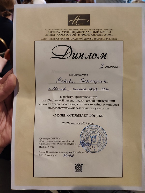 После таких историй Виктории Каревой было сложно представить свое исследование; но девушка собралась — и диплом первой степени стал заслуженной наградой за почти двухлетний труд.