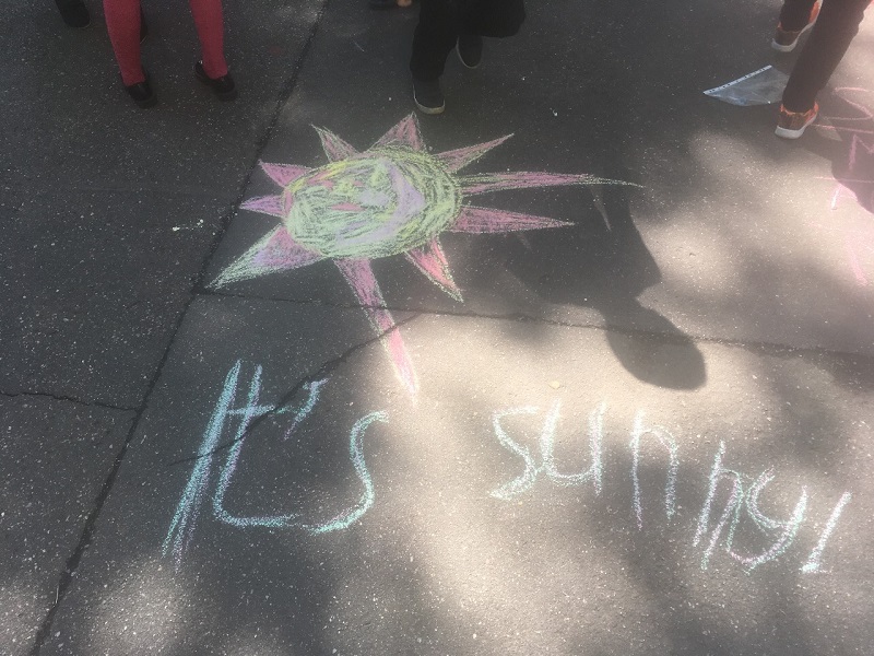 Второклассники корпуса «Гармония» под открытым небом изучали английскую лексику. Педагог Наталья Тарасова писала слова по теме «Погода весной», а ее ученики иллюстрировали их цветными мелками — так куда лучше запоминается. Сама Наталья призналась, что такой урок она провела в первый раз — и идея поражает своими новизной и необычностью.