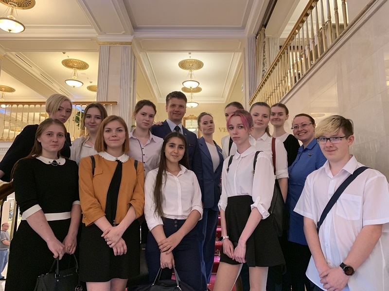 Сотрудники отеля поведали ребятам об истории гостиницы, гордо расположившейся во второй «сталинской высотке», и рассказали о принципах работы.