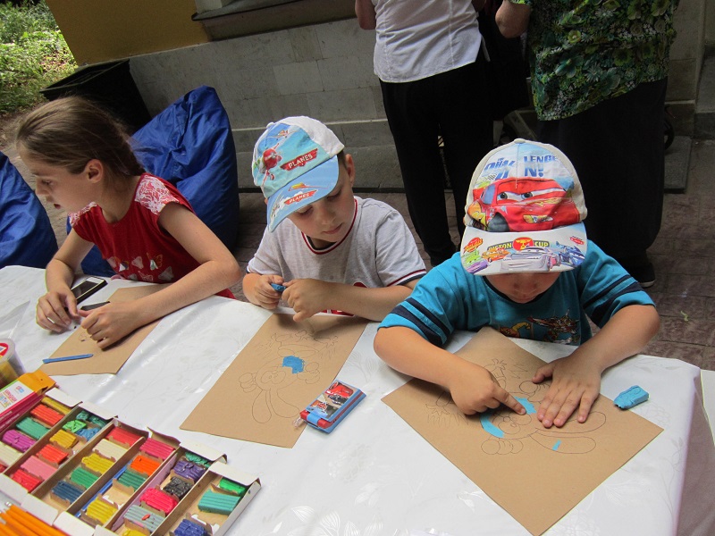 На мастер-классе по лепке из цветного теста участники создали символ игр — олимпийские кольца, а на воркшопе по пластилинографии дети с помощью пластилина раскрашивали любимых героев.