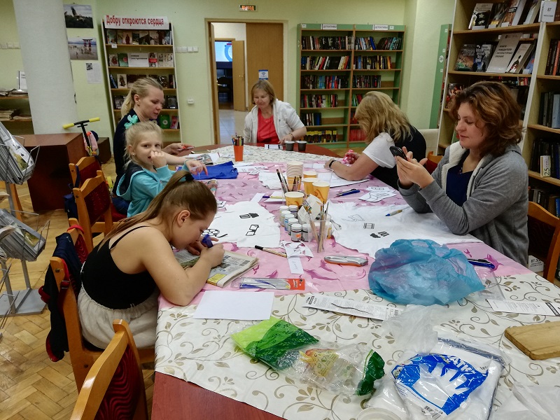 Серьезные темы, поднятые спектаклем и чередой кинолент, перемежались веселыми викторинами, квестами и мастер-классами. На мастер-классе Юлианы Ахмадеевой по арт-дизайну юные участники «Ночи кино» создавали свои шедевры на белых футболках по трафаретам.
