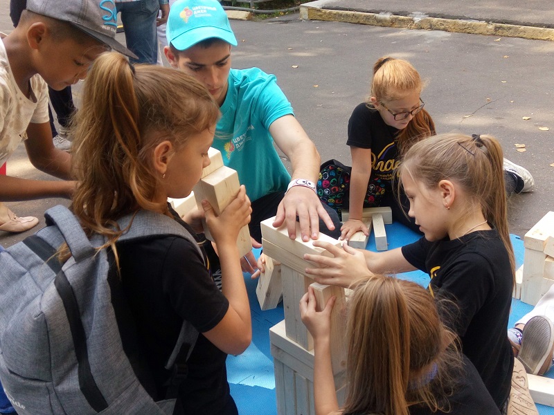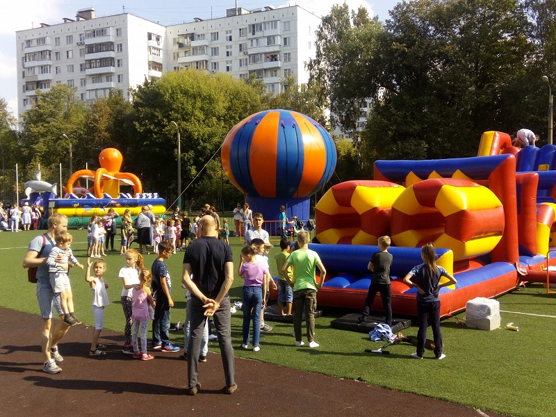 С утра здесь звучит музыка, и проходят различные конкурсы и концерты. На стадионе около образовательного учреждения работает огромный надувной комплекс в виде городка для непоседливых любителей попрыгать и повеселиться. Представители центра досуга «Личность» следят здесь за детьми, которые пришли развлечься.