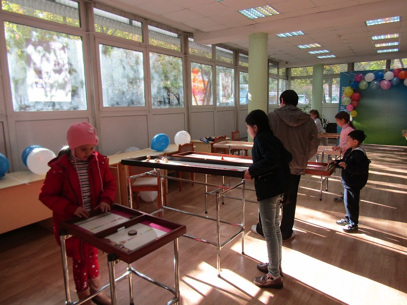 Презентацию своих направлений работы провел и Клуб настольных игр «Учись! Играй! Побеждай!» — он вызвал большой интерес своими необычными «настолками» разных народов мира: джакколо, кульбутто, новус, шаффлборд, корнхол.