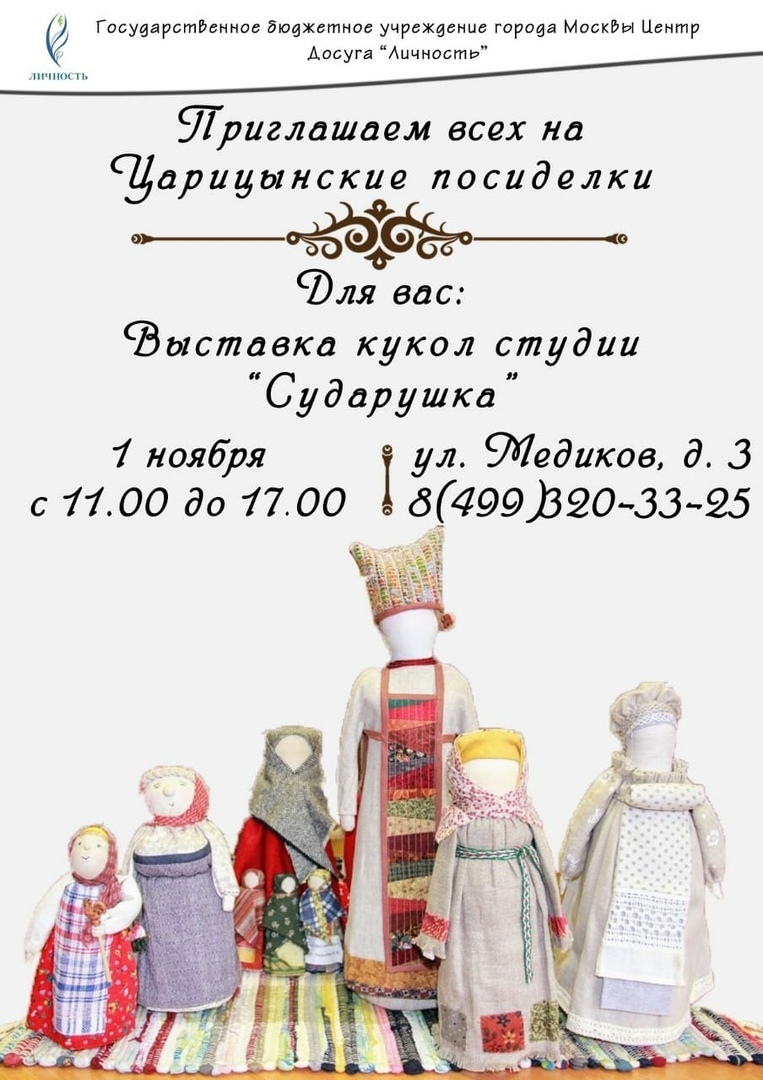 В этот же день пройдет выставка работ талантливых воспитанников Мастерской традиционной тряпичной куклы «Сударушка», бессменным руководителем которой является преданная своему делу Елена Чвилева.
