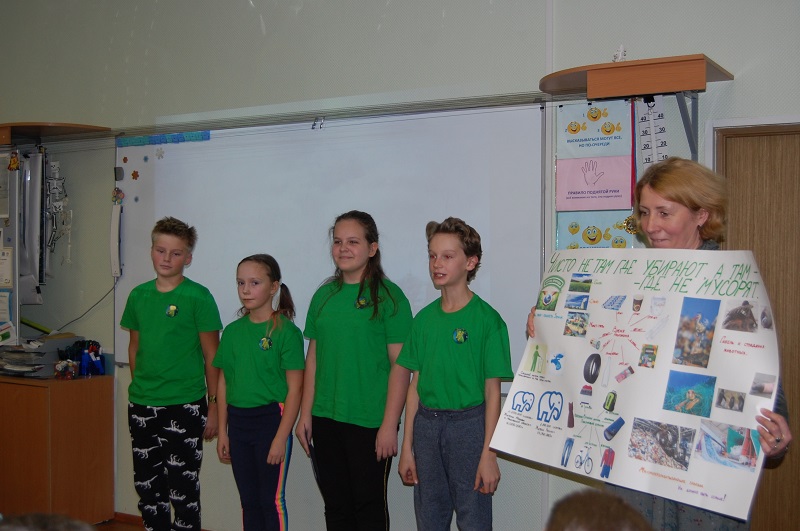 После прохождения квеста команды представили свои проекты на тему «Чисто не там, где убирают, а там, где не мусорят». На память об участии в веселой экологической игре каждый ребенок получил значок «Юного эколога».