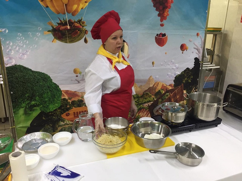— Лапшевик — это великолепный вариант для завтрака и полдника, — подчеркнула технолог. — В его основном ингредиенте — твороге — содержатся фосфор и кальций. В 100-граммовой порции лапшевика почти 10 граммов белка, а жиров и углеводов не так много. Тесто лапшевика замешивается с только что отваренными макаронными изделиями — это позволяет отказаться от использования яиц. Блюдо запекается в пароконвектомате при 180 градусах; так творог становится сочным, а у лапшевика образуется аппетитная корочка.