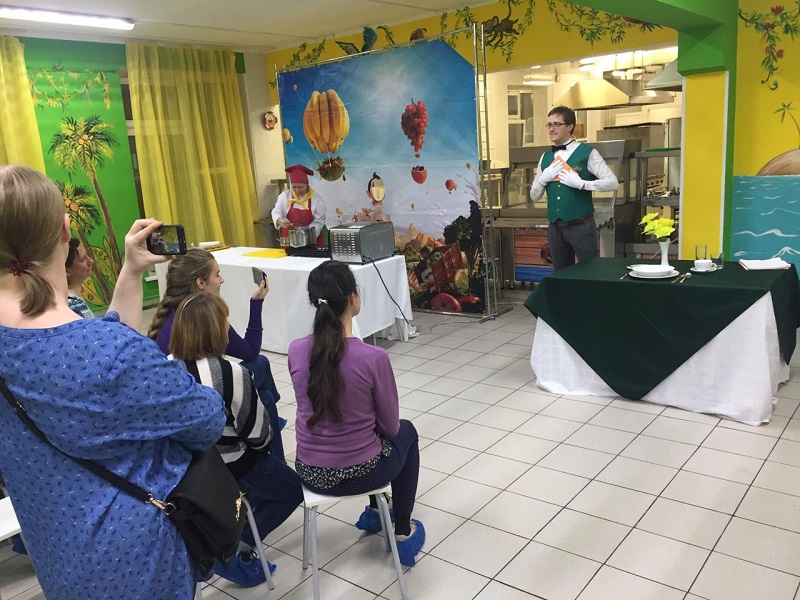 Событие прошло в контексте школьных мастер-классов «Готовим вместе». Сотрудники Комбината Сергей Купарев и Ольга Кондакова предложили собравшимся приготовить лапшевик.