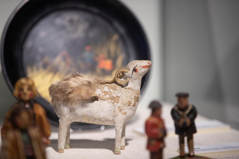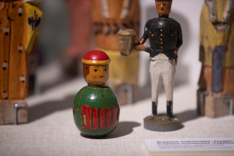 На экспозиции представлены оригинальные деревянные игрушки, которые были выполнены во второй половине XIX — начале XX в Сергиевом Посаде. Это расписанные вручную барыни и гусары, «щепные» — или вырезанные из трехгранных чурок. Большой популярностью в те времена пользовались куклы в технике папье-маше: музыканты, крестьянские дети, барышни, кормилица с младенцем, птичка-пищалка. Их дарили на праздники — в том числе и на Рождество.