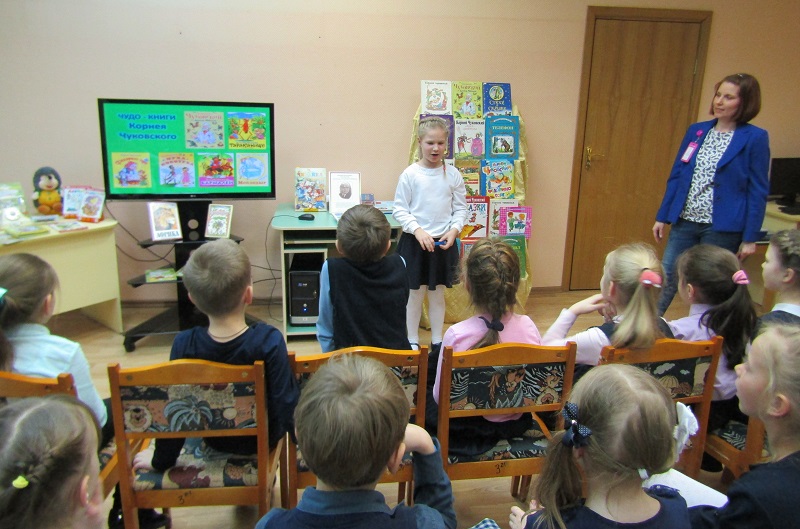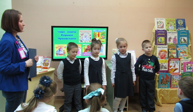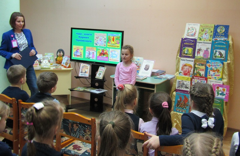 Первоклассники школы № 1466 имени Надежды Рушевой побывали на литературном празднике «В гостях у дедушки Корнея». Встреча в Детской библиотеке № 154 была посвящена творчеству поэта Корнея Чуковского; она состоялась во вторник, 21 января. Об этом журналисту Объединенной редакции интернет-изданий Южного административного округа столицы рассказала заведующая читальней Светлана Давиденко.