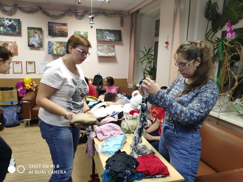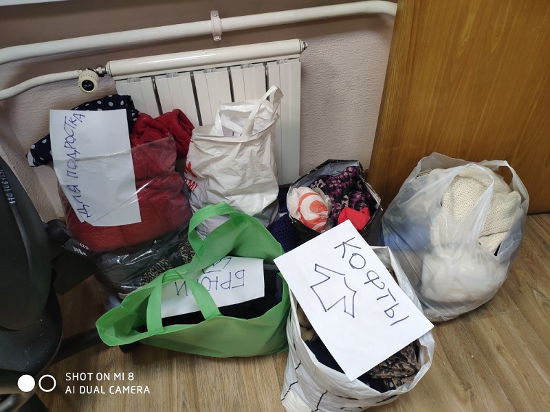 Воспитанники «Изумрудного города» и их родители принесли много вещей для семей с детьми, пожилых людей, — и сами с удовольствием обменялись ими друг с другом.