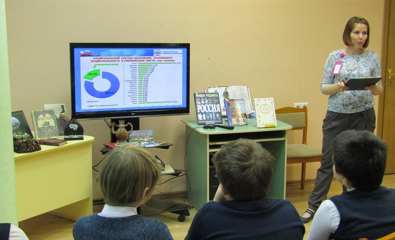 Ведущий библиотекарь Ирина Барашкина с помощью мультимедийных средств рассказала юным рушевцам о традициях, обычаях и культуре татарского народа.