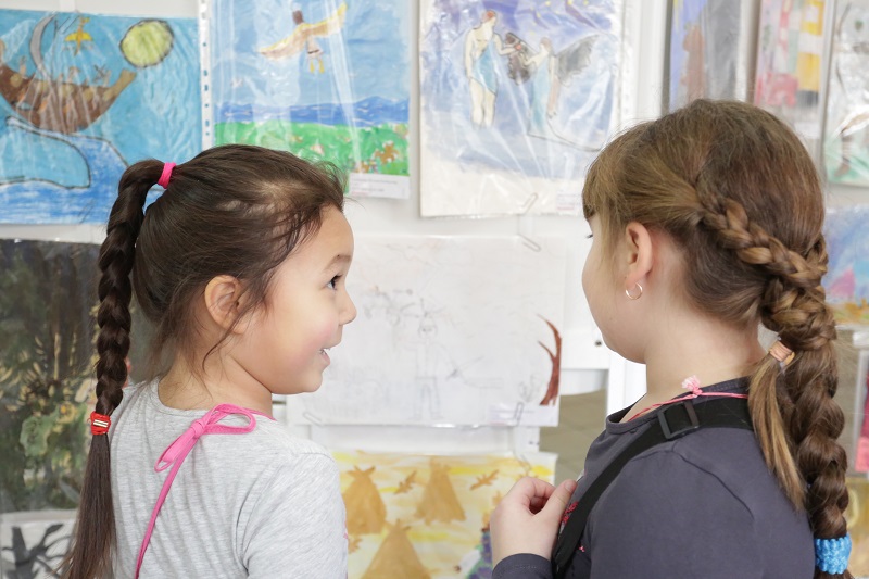 На празднике собрались дети и взрослые: участники конкурса, их родители, поклонники творчества Нади Рушевой. Гости побывали на выставке рисунков конкурсантов, а затем отправились в актовый зал.