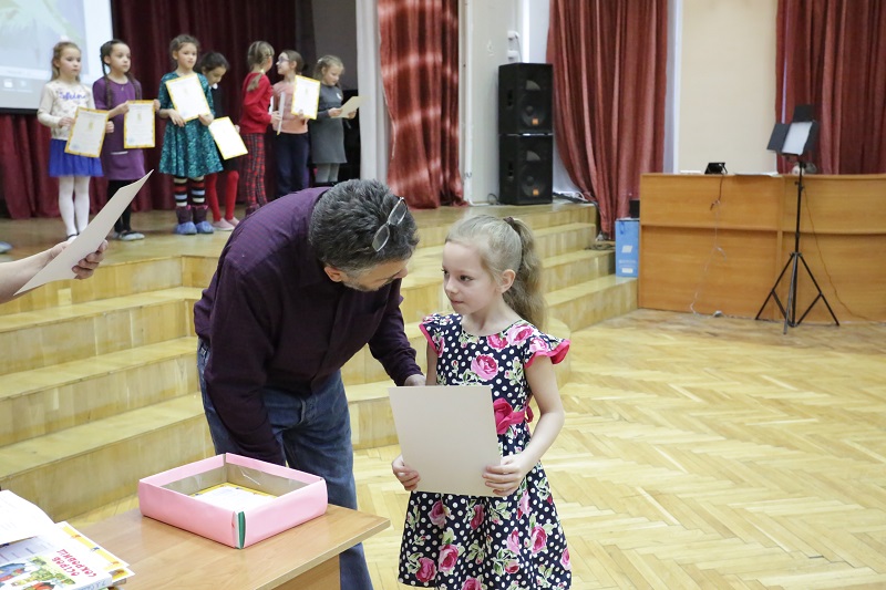 — После концерта настал волнительный момент: объявление результатов конкурса и вручение грамот и призов, — рассказала Наталия Усенко. — По сложившейся традиции ребят по возрастным группам вызывают на сцену — грамоты получают абсолютно все, хотя бы за участие. Владимир Спектор уже много лет приезжает, чтобы поздравить детей; он нашел добрые слова для каждого ребенка. Участников конкурса поздравила и представитель Московского центра культуры «Тыва» Урана Иванова.