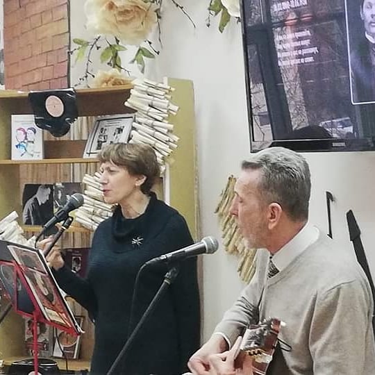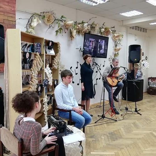 Гости читальни — авторский дуэт Татьяны Морозовой и Михаила Никитина — сделали встречу яркой и запоминающейся. Эти участники и лауреаты Московского и Грушинского фестивалей авторской песни окончили МИФИ, — там они и начали выступать вместе. Михаил пишет музыку на стихи известных поэтов и своих друзей; большая часть прозвучавших музыкальных композиций была написана именно им. Дуэту помогали молодые актеры — Прохор Баштанов и София Стахурская.