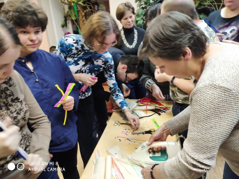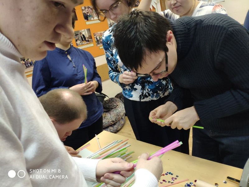 Воспитанникам «Изумрудного города» предложили самые разные материалы для творчества: трубочки для коктейлей, яркие пластмассовые камешки на клеевой основе, вощеную бумагу. Ребята подбирали красивые сочетания цветов, вкладывали трубочки в бумагу — и под чутким руководством психолога Ольги Кирилловой проглаживали «сооружение» утюгом; трубочки плавились в разноцветные полоски.