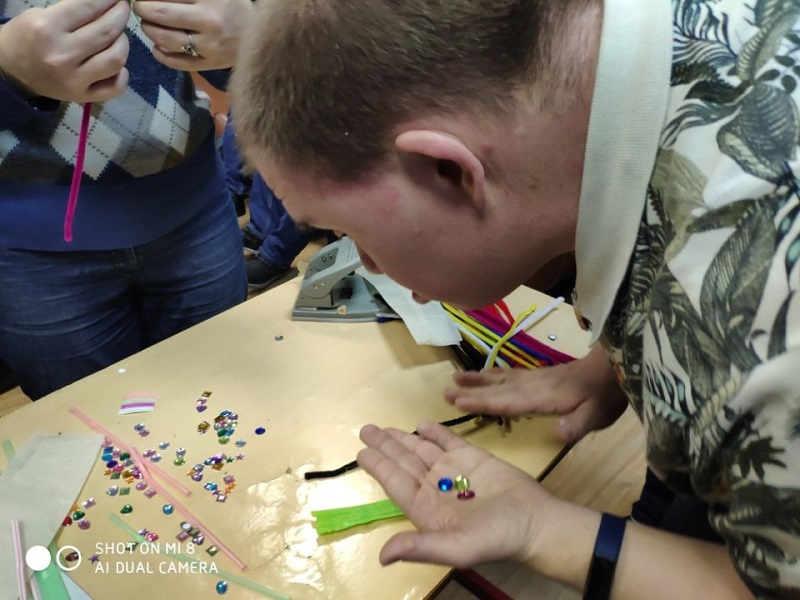 — После того, как заготовки остывали, браслеты подравнивали по размеру руки ножницами, — подытожила Светлана Лобанова. — С помощью дырокола участники мастер-класса делали дырочки, в которые продевали проволоку для закрепления; а дальше украшали по своему желанию — и у каждого получился совершенно особенный, богатый браслет для мамы!