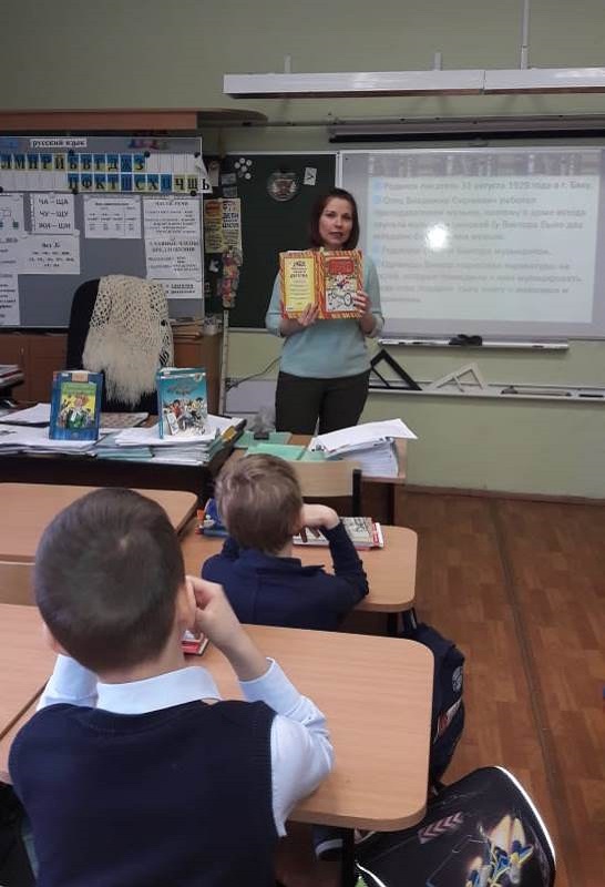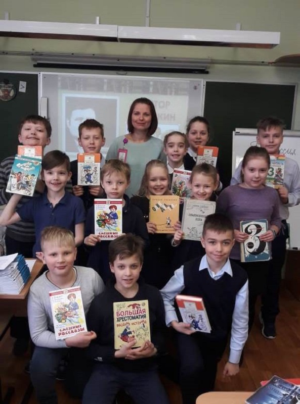 Вместе с ребятами библиотекари вспомнили героев рассказов писателя. Дети подготовили пересказы: «Когда споткнется Дед Мороз», «Премия», «Как я под партой сидел», «Тетрадки под дождем», «Кому это удивительно», «Как мы на самолете летали» — и многие другие.