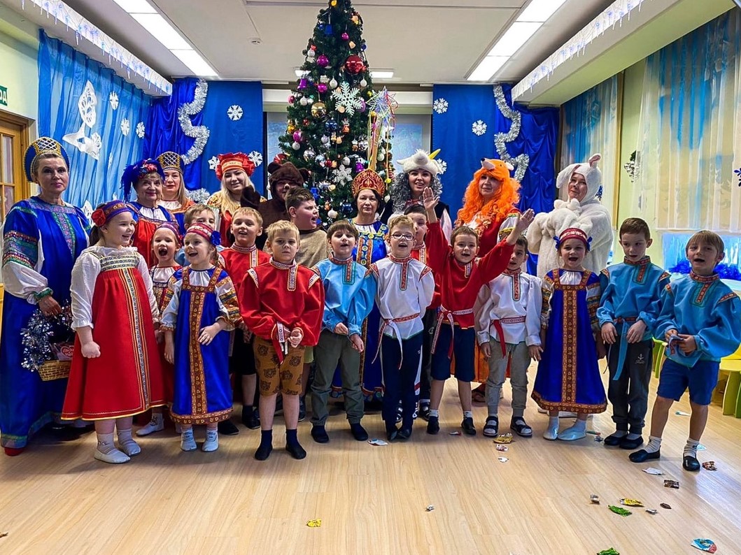Участники проводили новогодние праздники в народных славянских костюмах. Ребята совместно со взрослыми поучаствовали в тематических играх, исполнили песни и станцевали вокруг елки. Воспитатели подробно рассказали малышам о праздничных традициях русского народа.