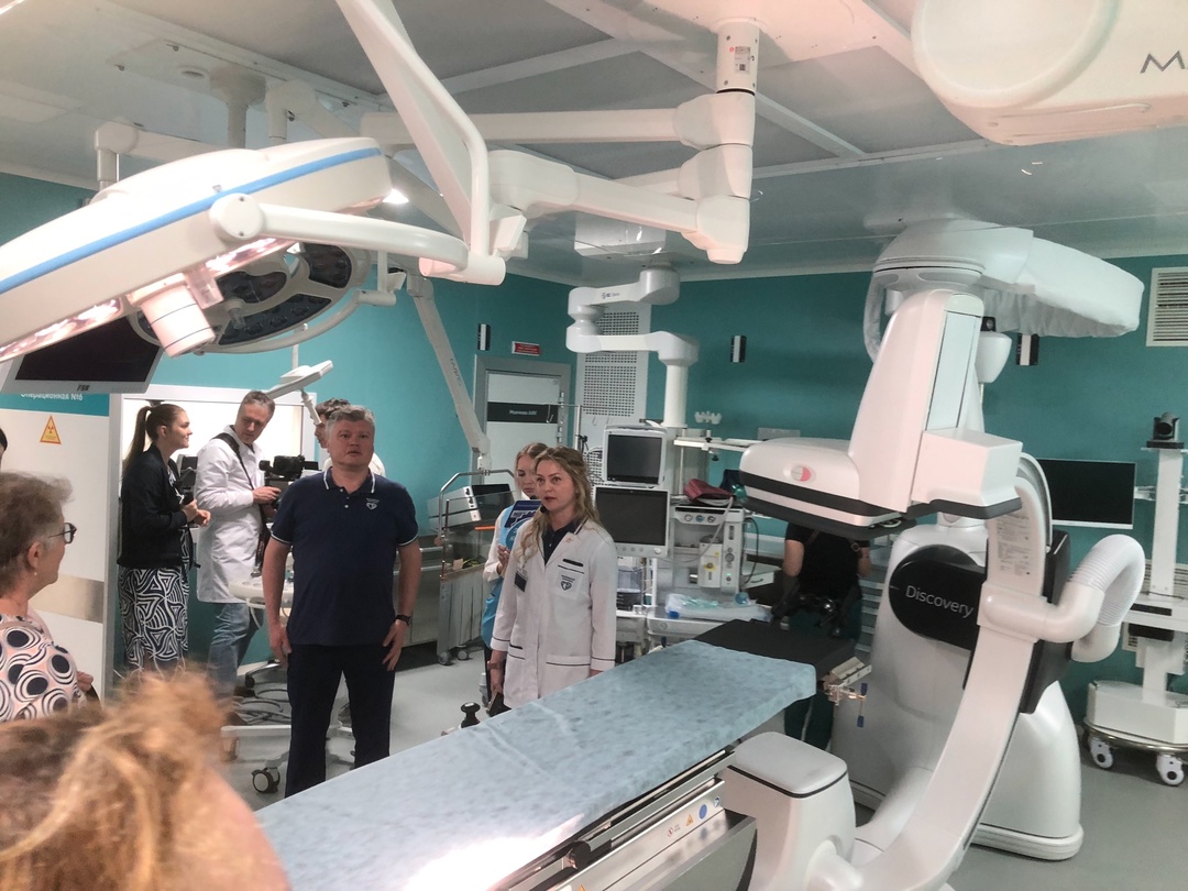 Всего во Флагманском центре созданы девять разнопрофильных операционных, в том числе одна — гибридная, одна — ангиографическая, две — общепрофильных, одна — травматологическая, одна — нейрохирургическая, одна — гинекологическая/урологическая и две — малые операционные.