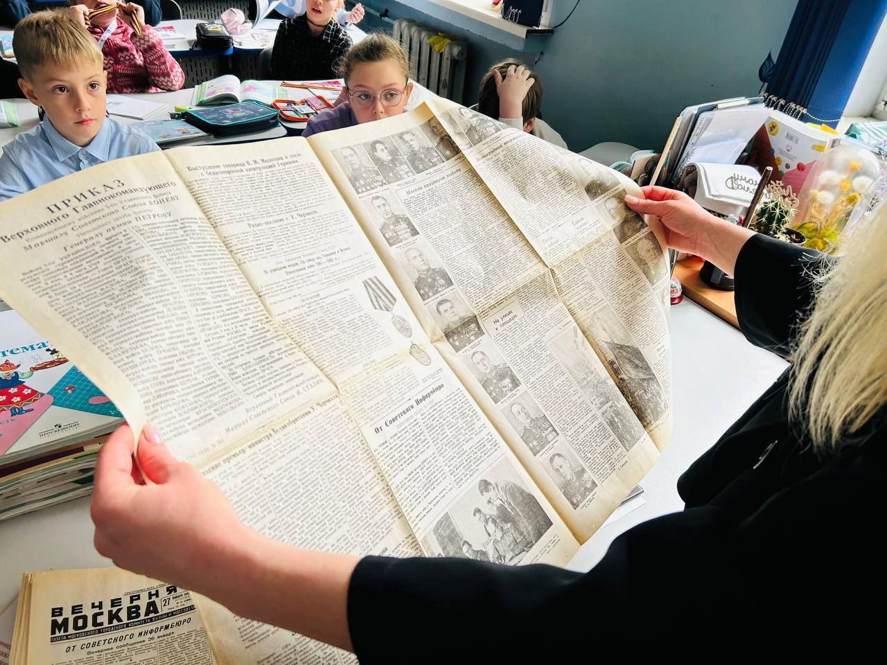 — Во время общения с ребятами особое внимание я уделила нашим ветеранам — участникам Великой Отечественной войны, почетным жителям Царицына, которые до сих пор живы. Также я упомянула доблестную Кантемировскую дивизию, в честь которой названа улица Кантемировская. Ученики активно участвовали в обсуждении, делились историями о своих прабабушках и прадедах, сражавшихся на войне. Они с интересом посмотрели фильм и прочитали газеты «Вечерняя Москва» за 1941-1945 годы. Особенно их впечатлила газета от 10 мая 1941 года с поздравлением с Победой на первой полосе. Память о прошлом — основа нашего будущего. Сохранение исторической памяти важно для жизни каждого из нас, — отметила Мария Гаврилина.