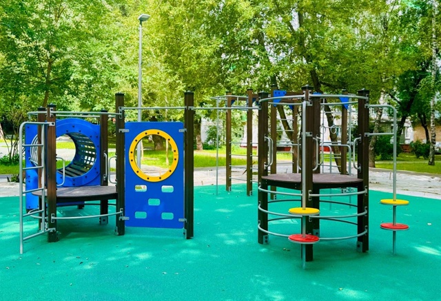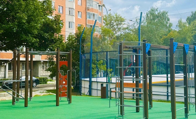 Особое внимание уделено двору по адресу: улица Медиков, дом №22, корпус 1. Там появились две современные детские площадки с игровыми комплексами, каруселями, качелями, балансиром и песочницей. Оборудованы две спортивные площадки с тренажерами.