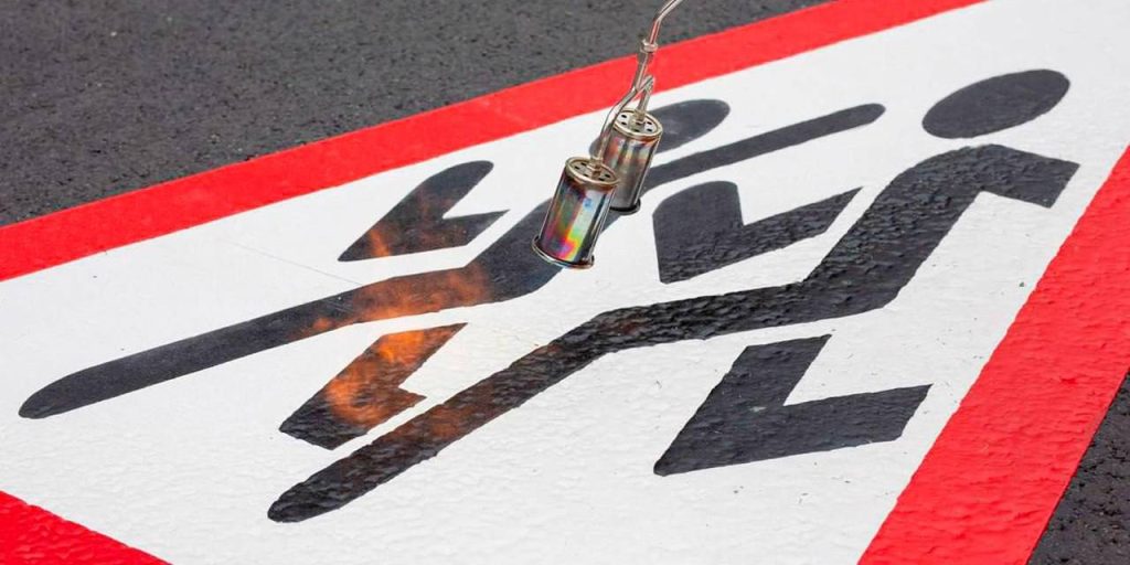 Разметку «Осторожно, дети!» наносят вручную холодным пластиком — он более стойкий, не требует предварительного прогревания и поэтому не деформируется во время работ. В состав материала входят специальные стеклошарики, которые усиливают отражение света. Это повышает видимость разметки и делает движение на дорогах более безопасным.