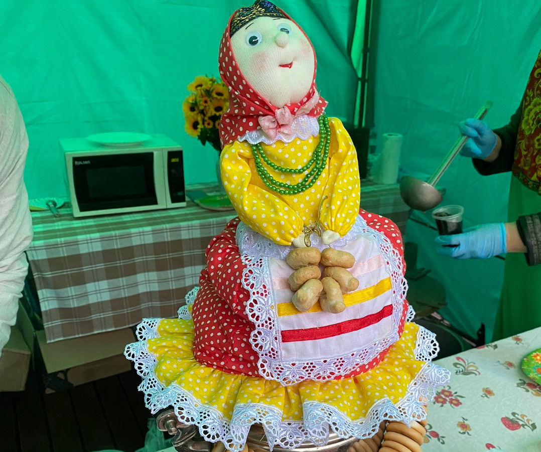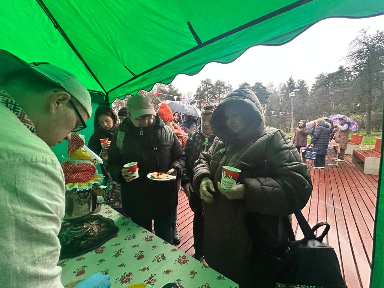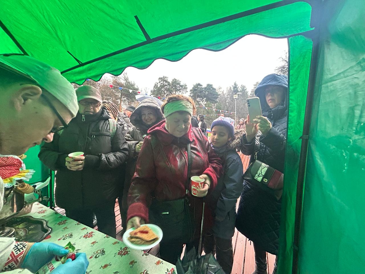 Гостей праздника ждала насыщенная концертная программа с патриотическими песнями о Родине, яркие танцевальные номера от театра Анны Кузнецовой и шоу с ростовыми куклами для детей. Особенным моментом стала традиционная русская лотерея, которая добавила интриги празднику и подарила гостям море положительных эмоций. А завершилось все вкусным угощением — горячим чаем с ароматными блинами.
