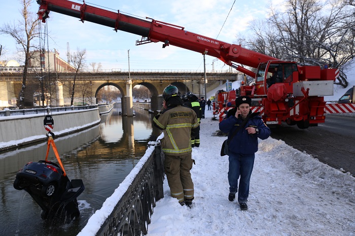 Автомобиль KIA 12 февраля пробил ограждение на Андроньевской набережной в центре Москвы и упал в реку. Автомобиль съехал с набережной в реку в результате ДТП.